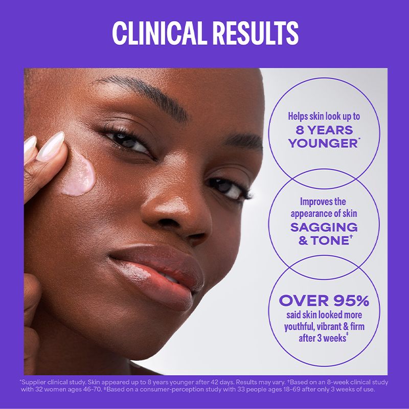 *Supplier clinical study. Skin was professionally judged to look up to 8 years younger from baseline after 42 days. Results may vary.
