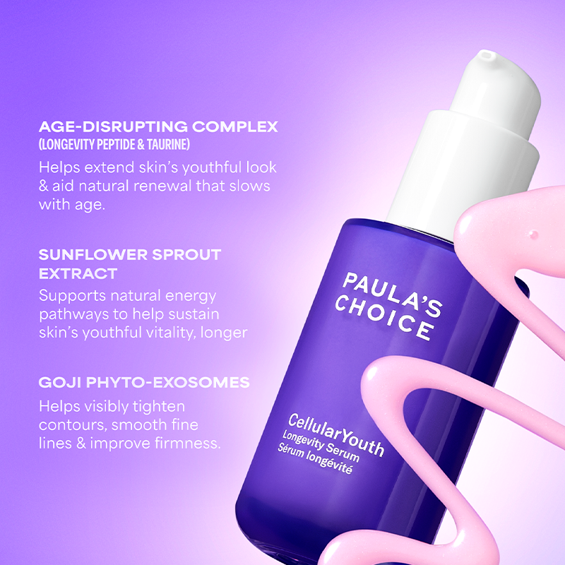 While many Paula’s Choice serums (like retinol or vitamin C) target specific concerns, CellularYouth Longevity Serum is designed as a multi-benefit treatment that supports the skin’s resilience pathways over time. It’s supercharged to address both present concerns and preserve skin for the future, making it a powerful complement to your existing routine.
