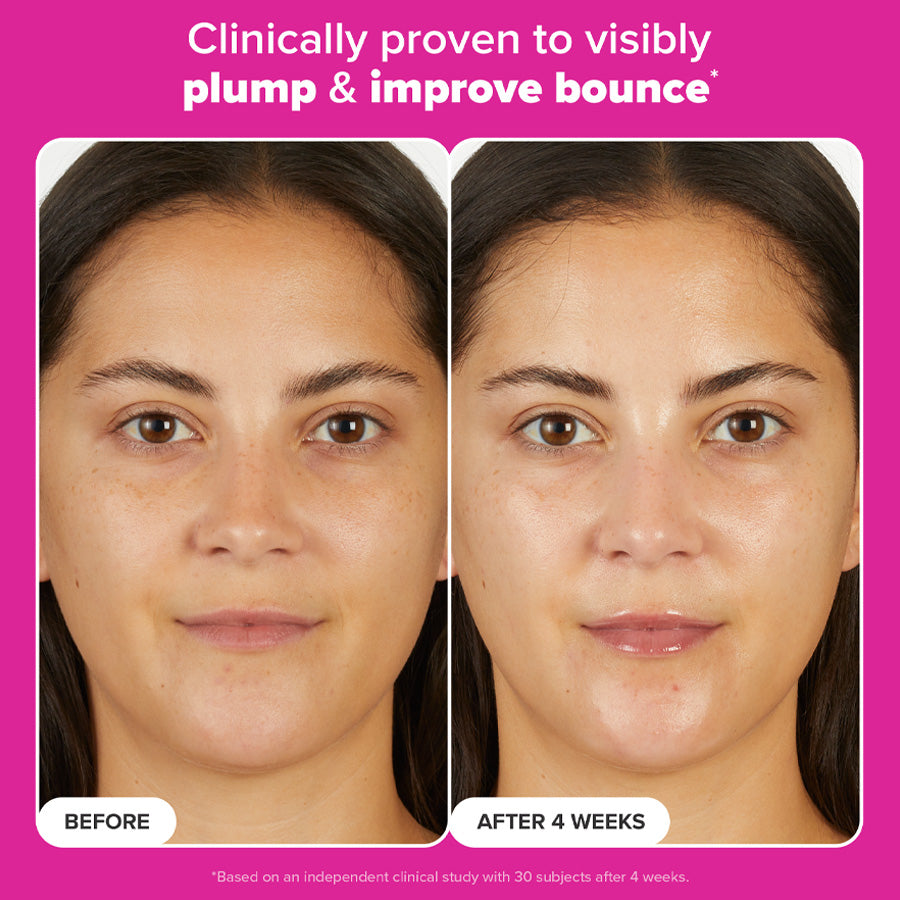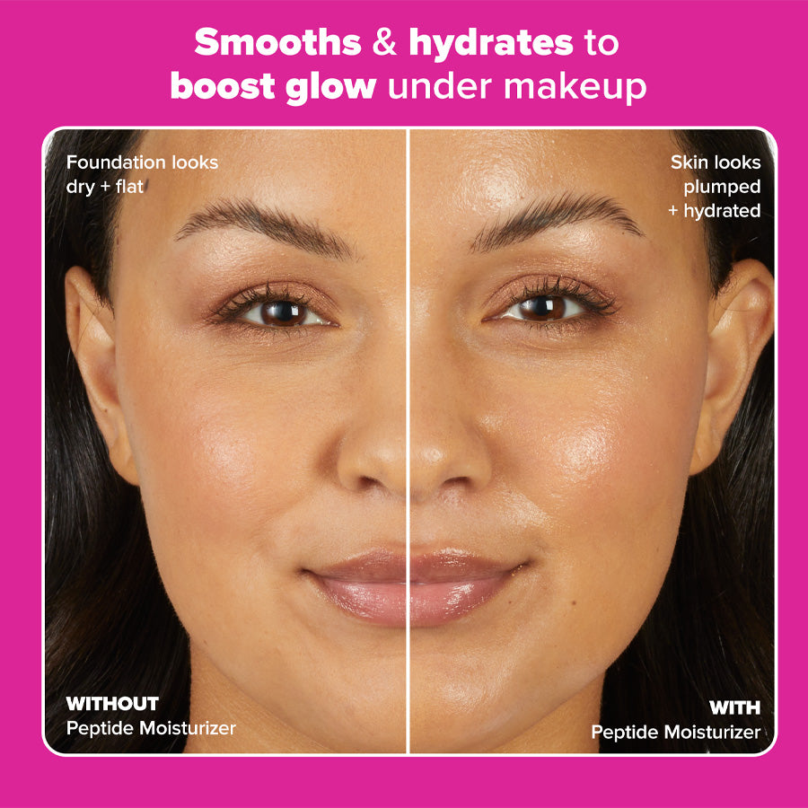 Follow by the Pro-Collagen Peptide Plumping Moisturizer, a cushiony, non-greasy formula that saturates every surface cell in hydration to visibly plump and improve bounce. 3X Pro-Collagen Peptides support and sustain healthy collagen and elastin levels. Our foundation-friendly moisturizer won’t pill under makeup and preps skin for a boosted glow.